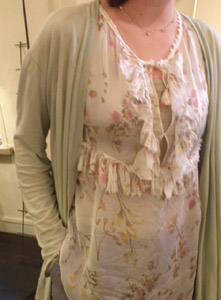Kristina Tiのシルクのブラウスと、お手持ちの長袖カーディガンと。