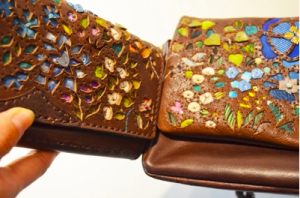 まずは、革の色をブラウンにと決められて、次に好きなお花のイメージ・色を。