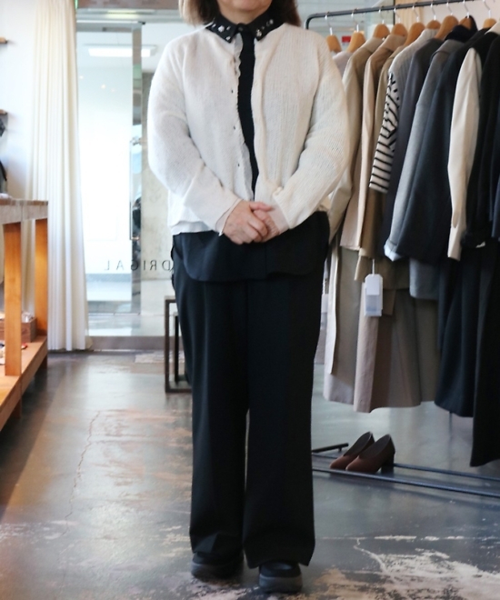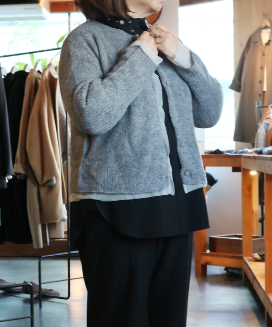 『このカーディガンは普段にも、お食事会などのかしこまった席にも