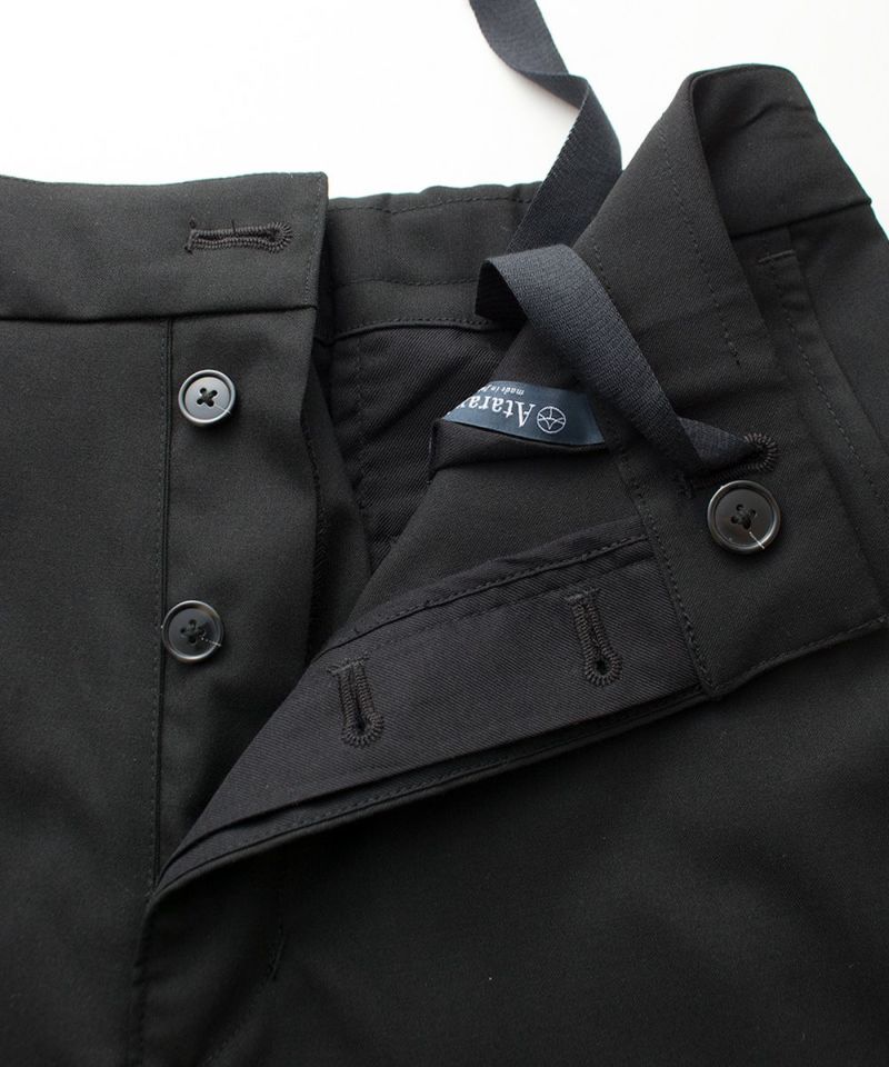 ウエストは後ろ側がゴム仕様、前側はヒモ仕様なので