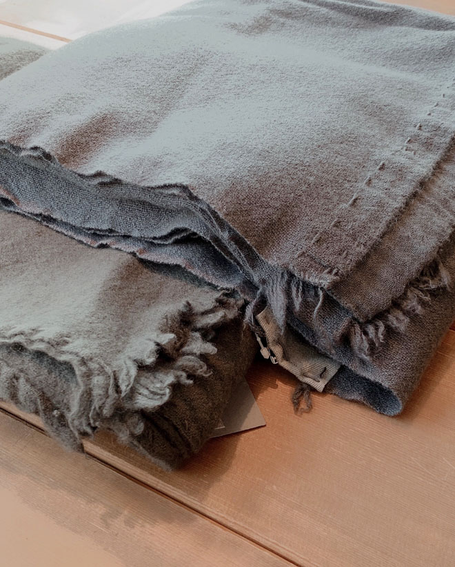 こちらのストールはただいまマドリガル南堀江店でお取り扱いしております。