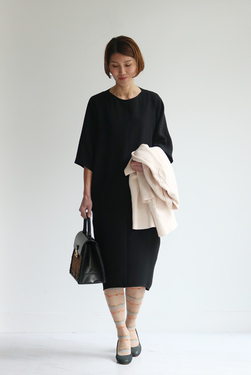 黒のワンピース「ブラックドレープ」。