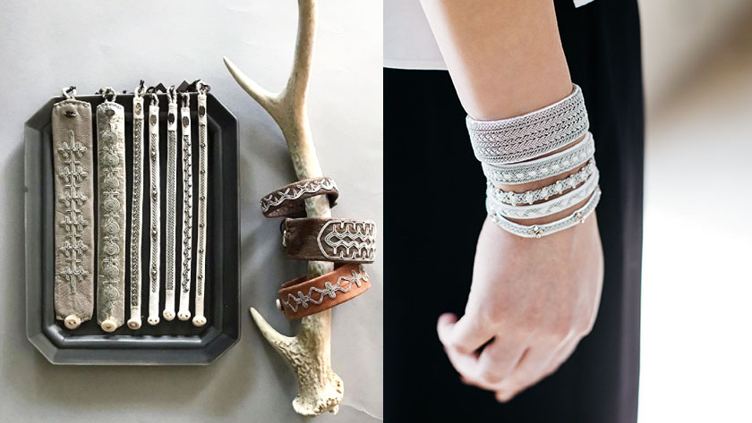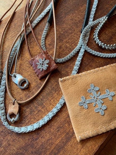 トナカイの遊牧を生業とした彼らがその革と角を使って作り上げたレザーアクセサリーです。
