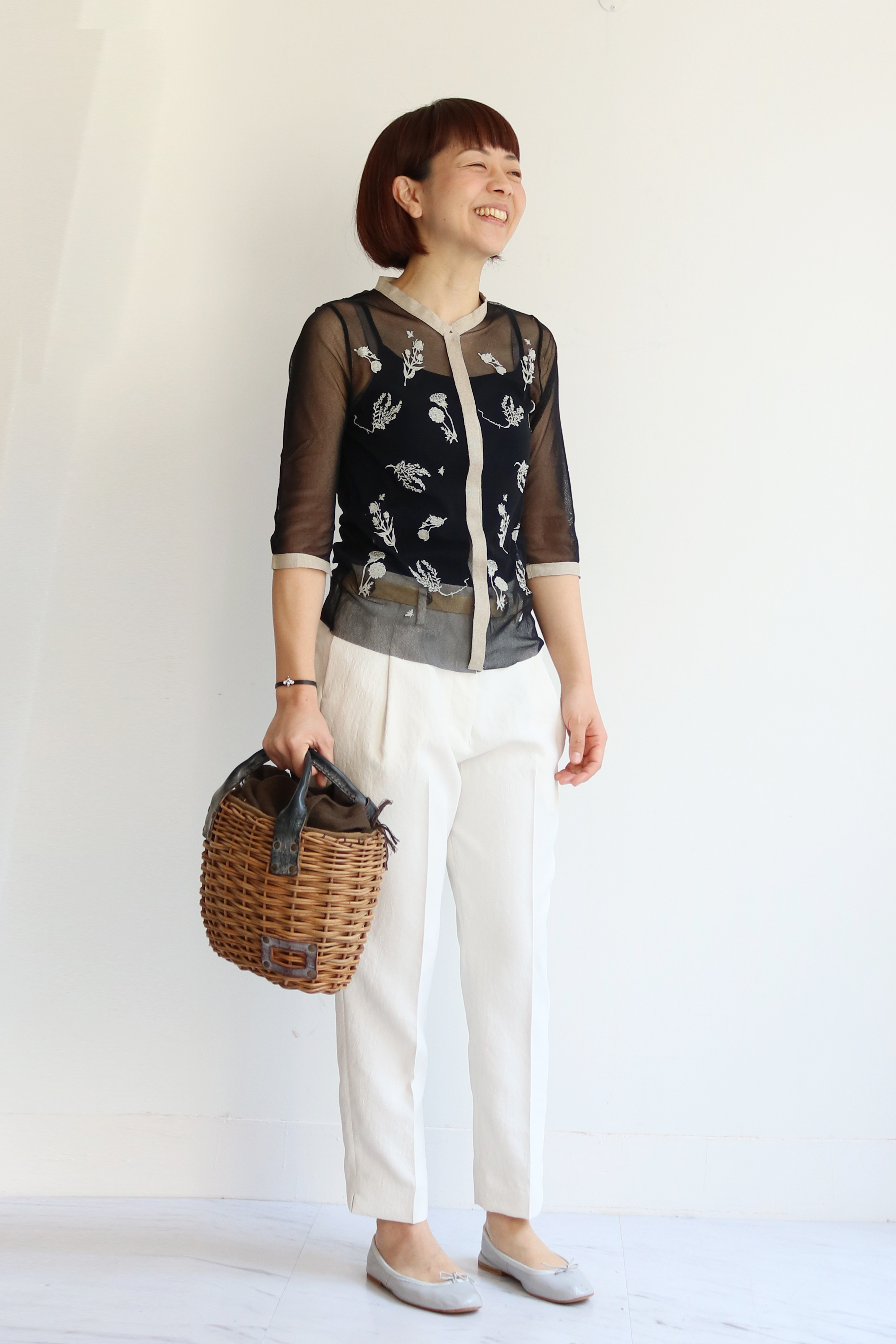 白パンツのシンプルコーディネートも、ちょっぴり差がつきます。