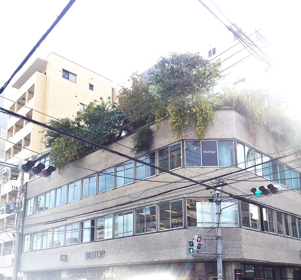 マドリガル南堀江店の頭上は、このように緑でモリモリです。