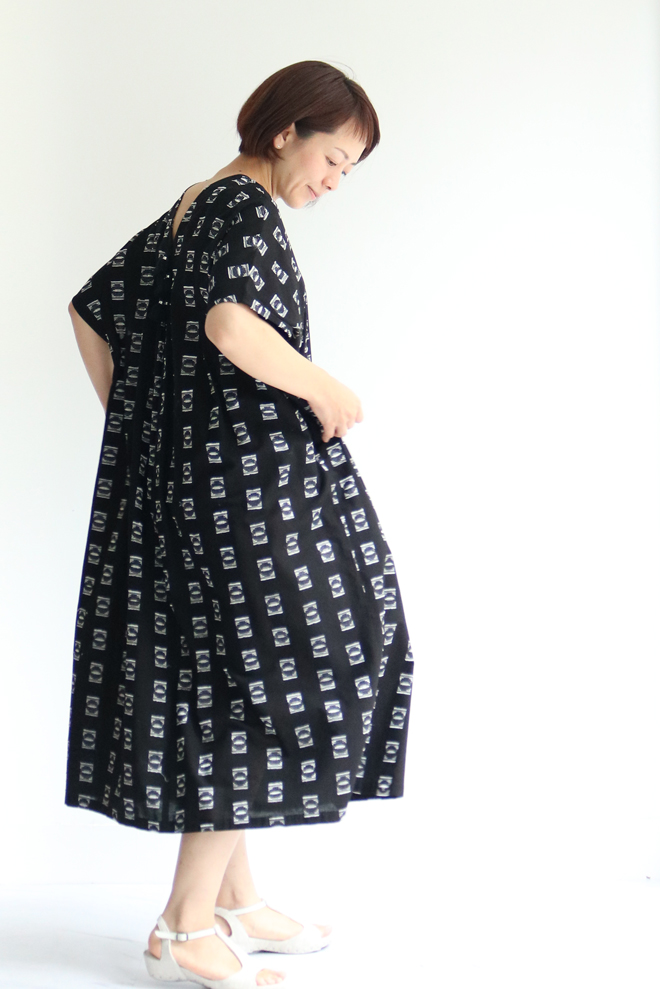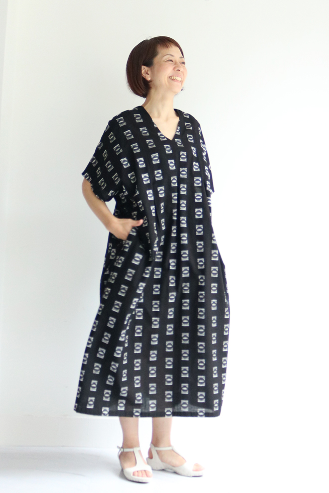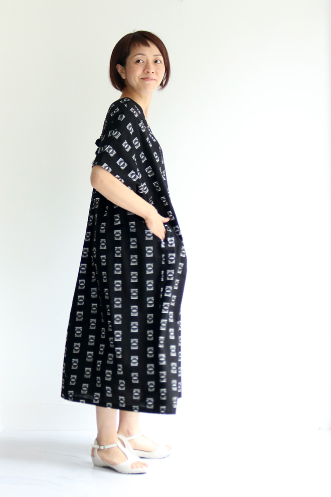 ストンと着たり、ベルトをして着たり(下のお写真は、同じ形の無地です)