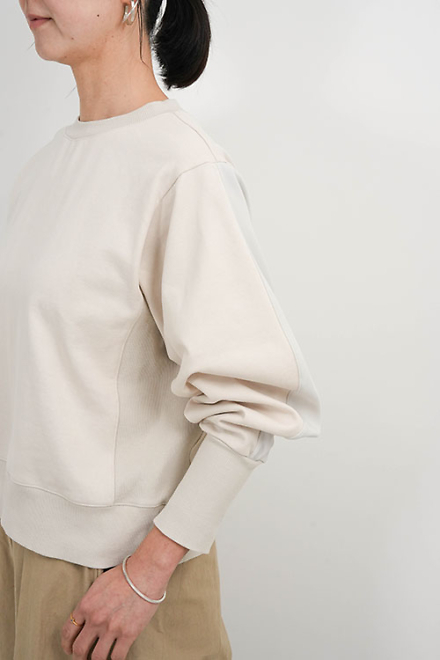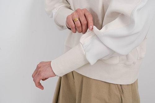 袖の生地の切り替えが