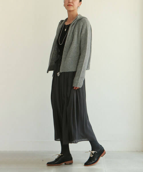ニットパーカーを羽織る