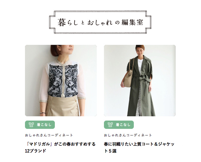 「暮らしとおしゃれの編集室」の「着こなし」コーナーにて連載掲載中。