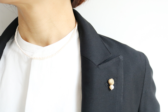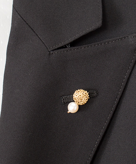 ピンブローチがあしらわれています。