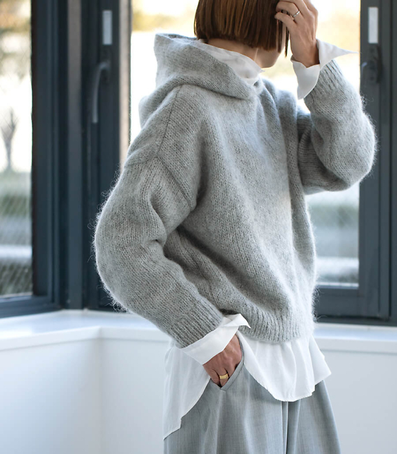 フードもこの年齢でも迷いなく着れるとっても大人素敵なニットです。
