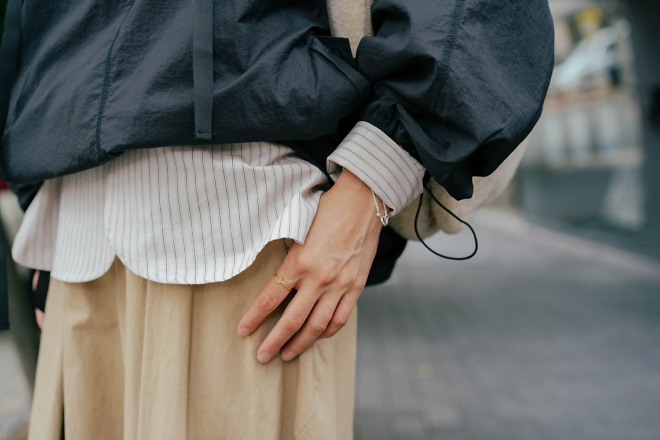 コットンシャツにサラリと重ねて、優しさを味方に