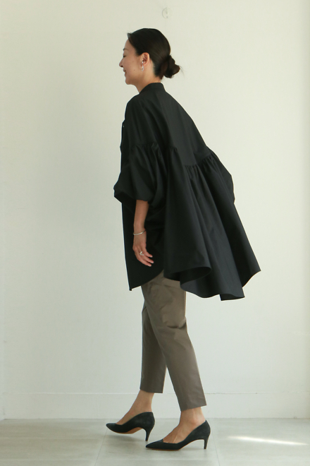 「ウェイヴィシャツ ブラック」は袖と裾にボリュームのある