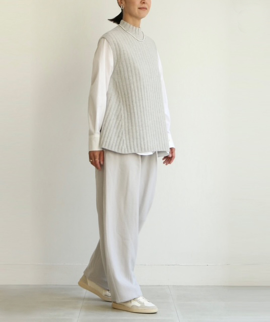 控えめなカジュアル感のなかに、ニット独自の高級感が漂います。