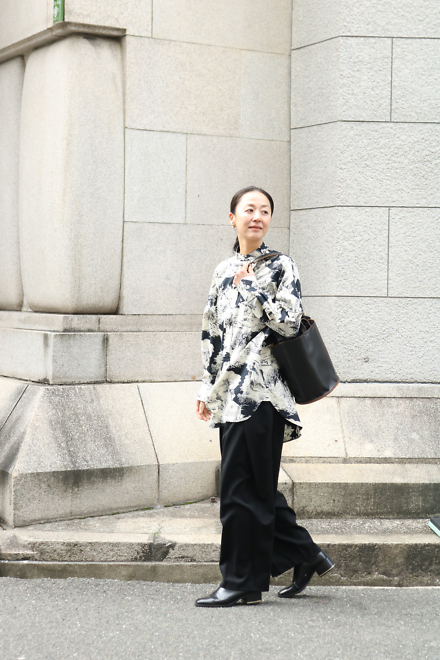 「ピローブラウス」「リピートパンツバーズアイ」「シューズ/3.1 Phillip Lim」