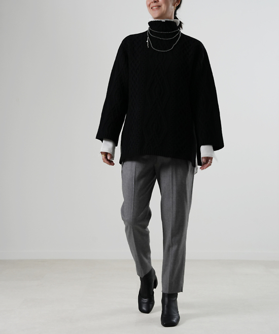 また、「カレイドニット ブラック」は綱編みが綺麗なニットです。