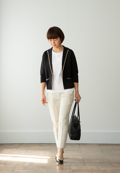 「リピートパンツウォッシャブル」「しっくりバッグ」モデル身長159cm