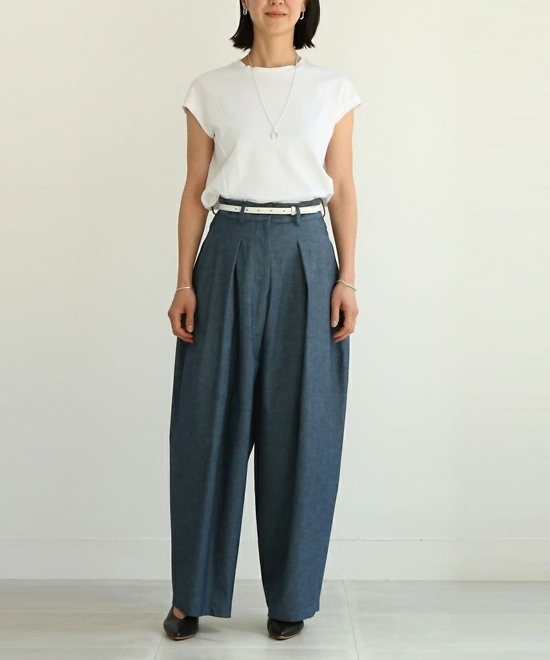 「ドルフィンパンツシャンブレー」モデル身長164cm