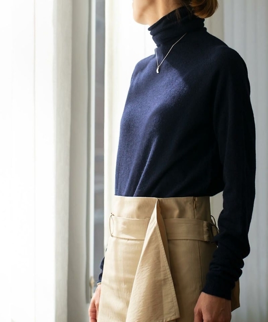 また「ベールタートル」はカシミア 100%で柔らかく、薄手でやや透け感のあるシアーな感じが軽やかです。