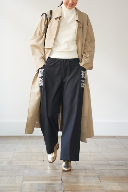 柔らかな雰囲気と、シンプルにまとまったデザインで大人のコートとなっています。