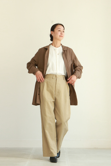 1枚仕立てで、気がるに羽織りやすく、Aラインのシルエットなので
