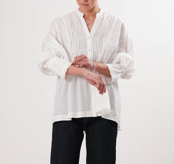 また「ハーブブラウス」は前開きで、胸元にシャーリングが施されたブラウス。