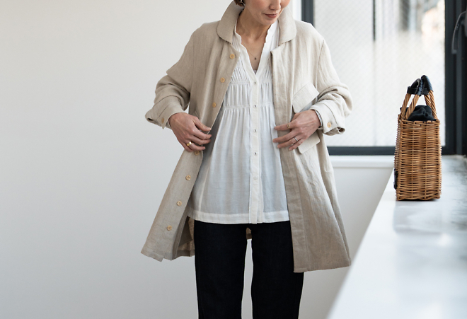 また「スリッポンコート プロヴァンス」はリネン55% コットン45%の混合生地で