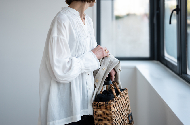 「ハーブブラウス」は胸元のシャーリングが華やかな印象の