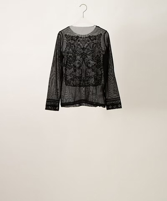 「フロックカットソー」F53 mesh BLACK×flock BLACK(soutiencollar)