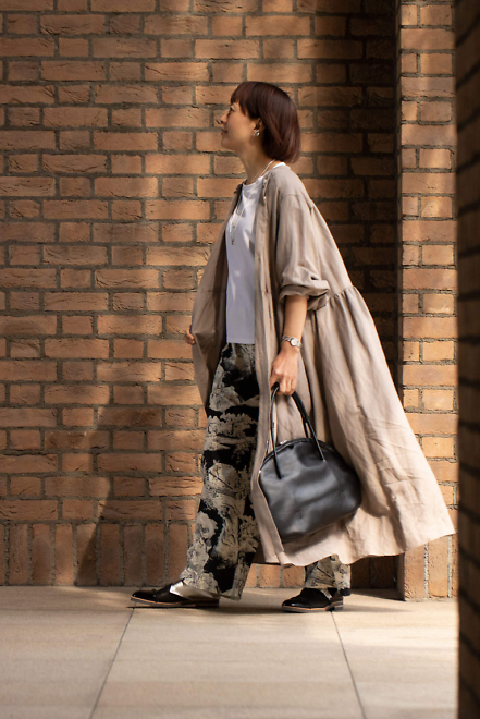 ワンピースとして1枚で贅沢な着こなしをまずは楽しんで。