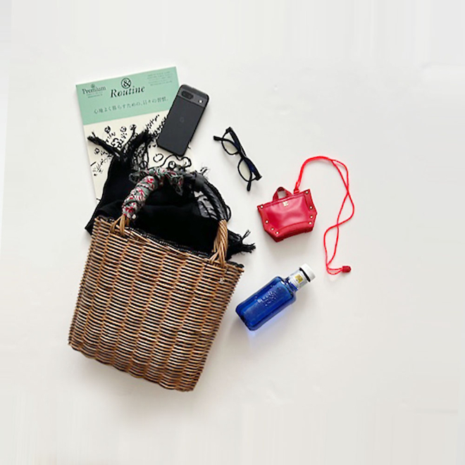 「バッグに入れてみました|フニュシュリンク ロングバスケット・カラーハンドル(eb.a.gos)」