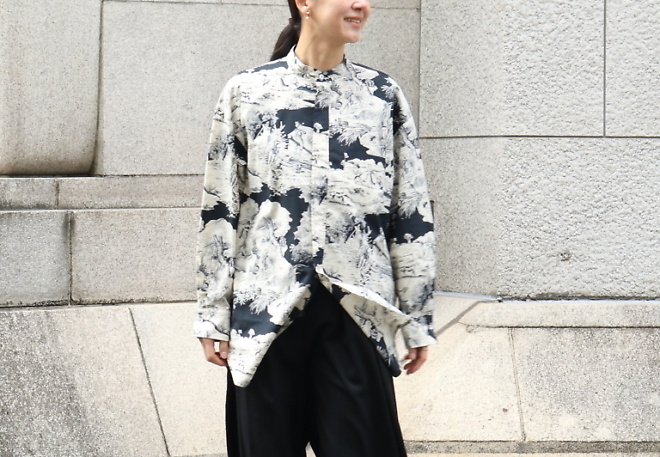 「トワルドジュイシャツ」はコットン素材で絵画のような図柄が美しいシャツです。