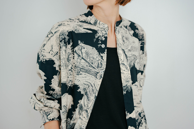 「トワルドジュイシャツ」を着る。