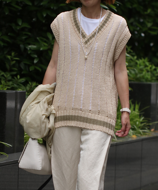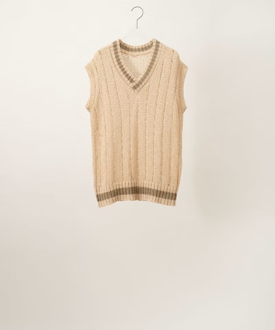 「ティータイムベスト」はざっくりと編まれたニットベストです。