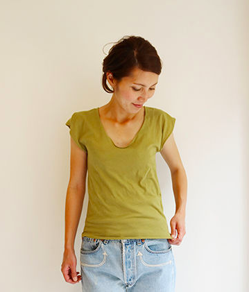 入荷したUネックTシャツは着たらこんな感じです。