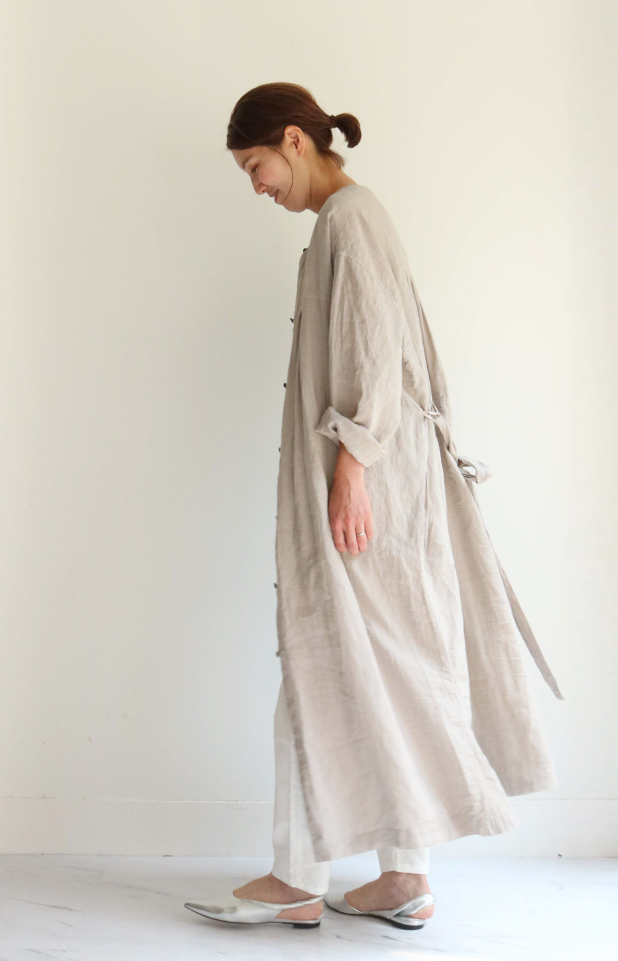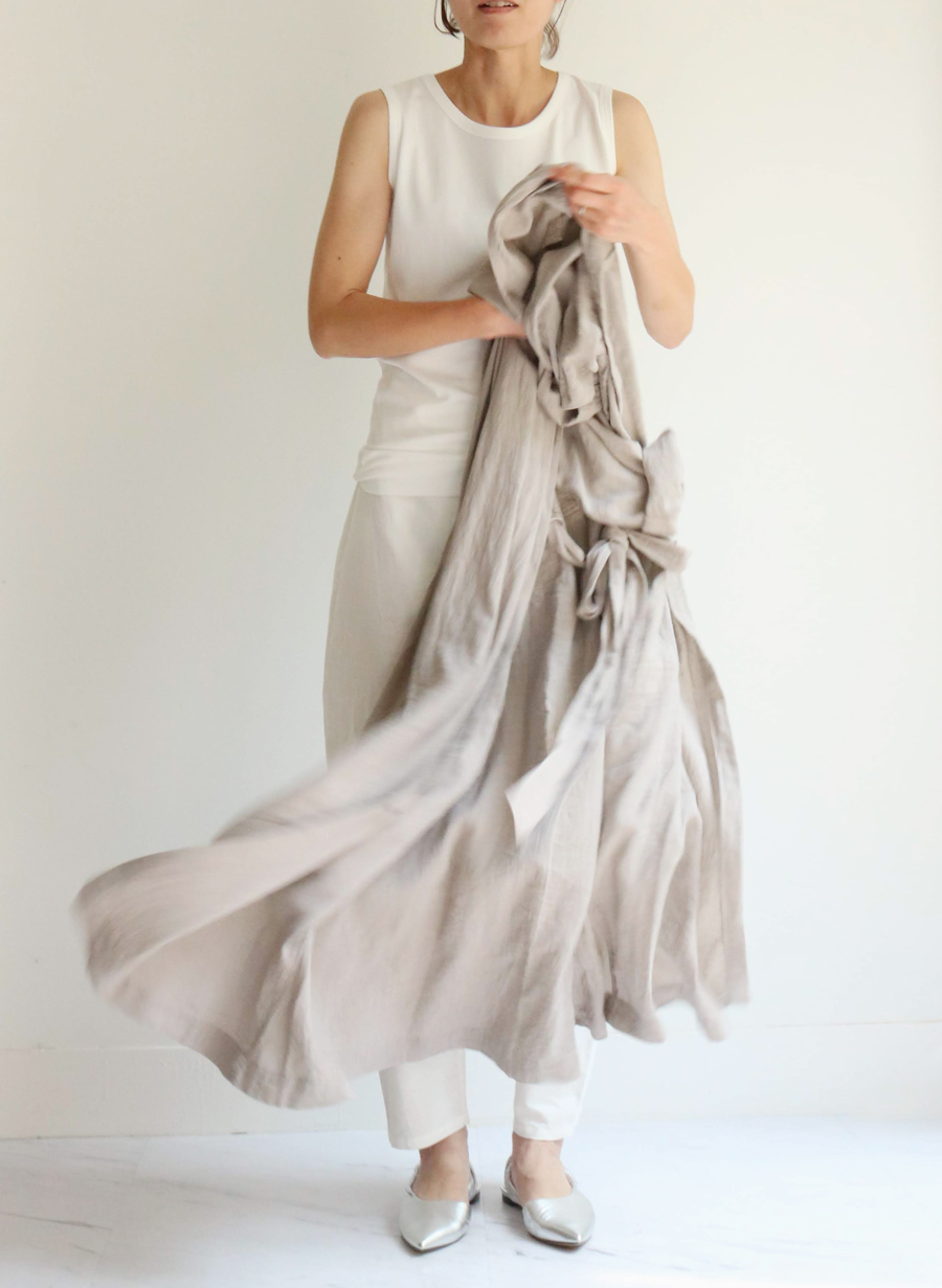前後ろ逆にして、多様な着こなしもできるワンピース。