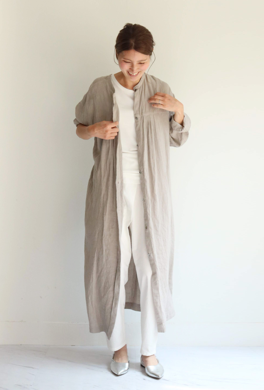 ボタンを留めたらワンピースとしても着られて