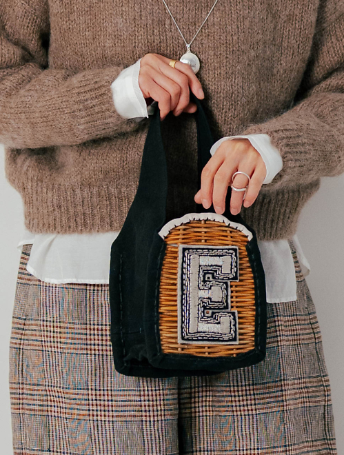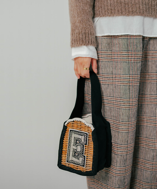 eb.a.gos「お買い物バッグEワッペン」BLACK(刺繍シルバー)