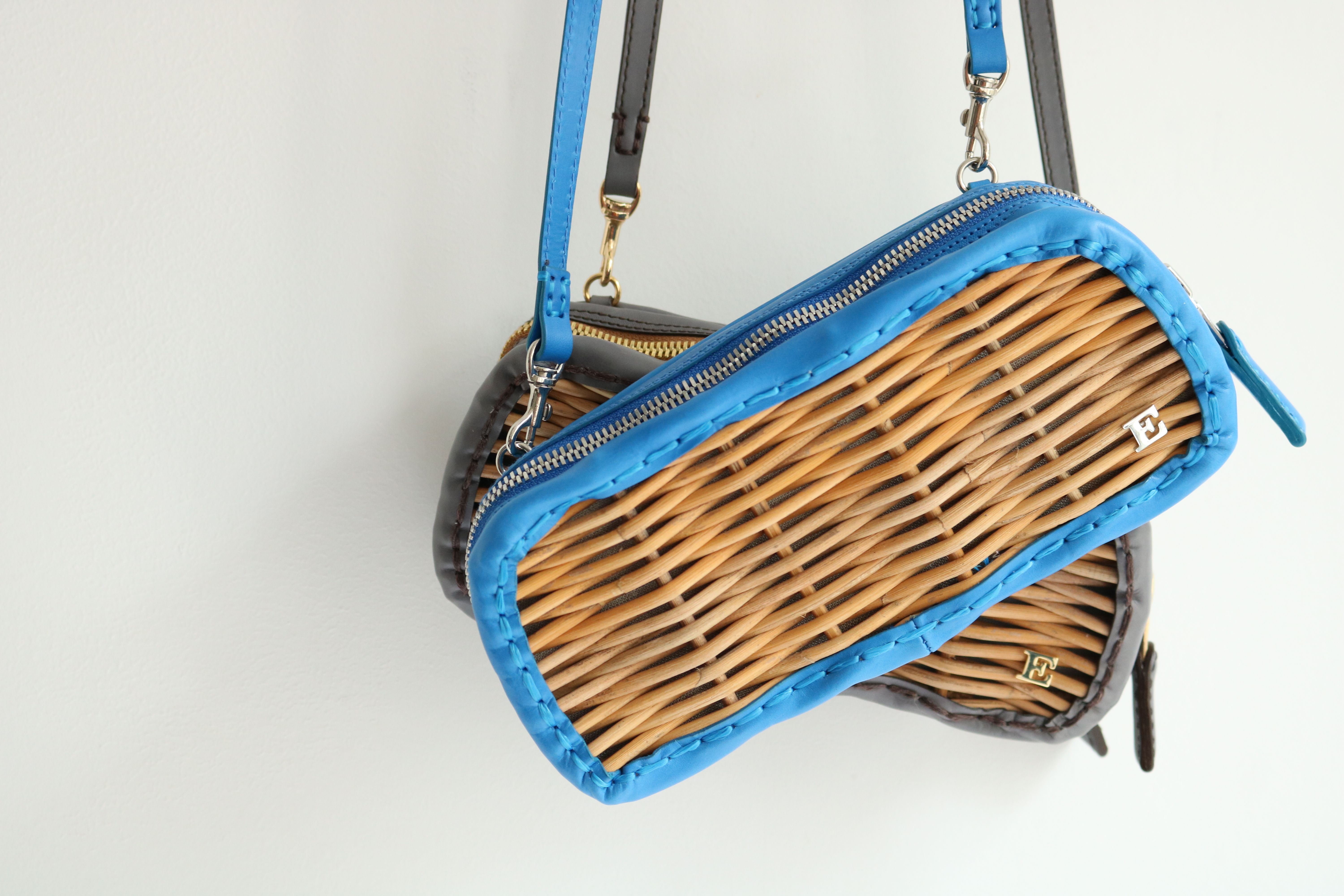 カーフレザーショルダーベルト 籐付き長財布 BLUE