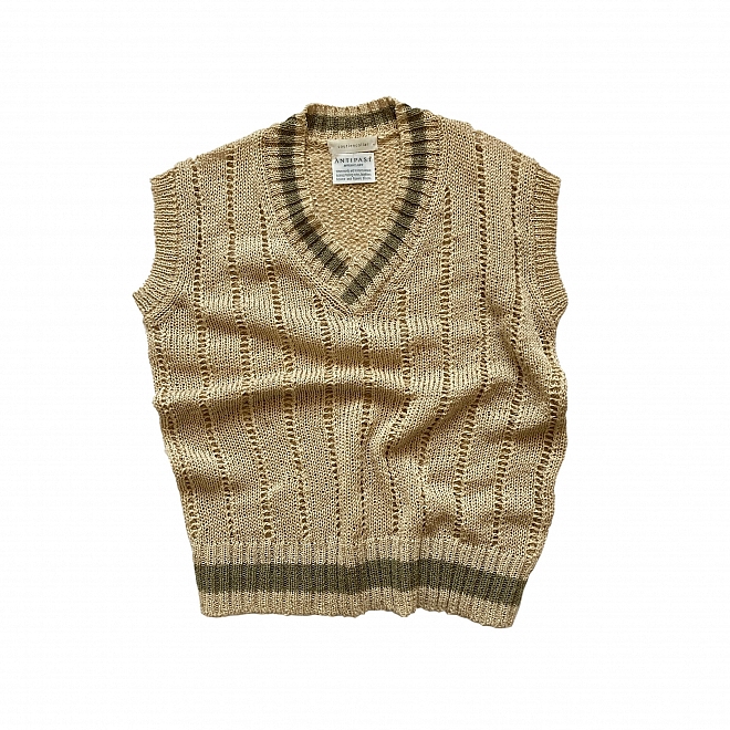 ブレザーの下から覗くV字のベストとカラフルなボウタイ