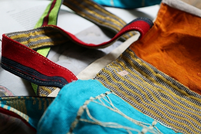 風合いのある生地がいくつもつなぎ合わされたルナバッグは