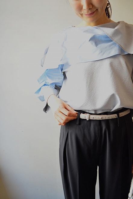 素材の質感に個性が光る、ライトグレーのベルトで、