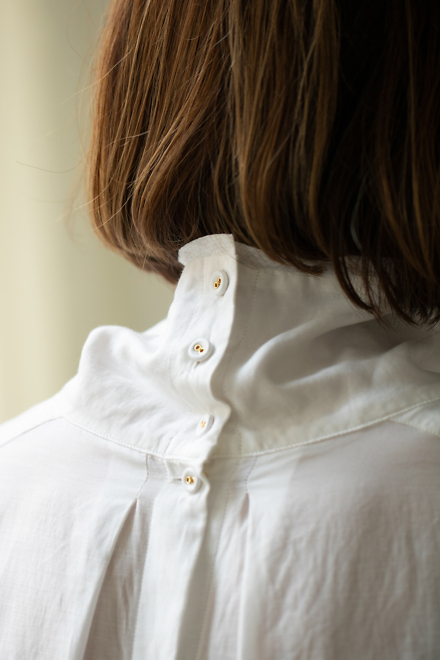 ボブヘアーからのぞく後ろのボタンも可愛いね。