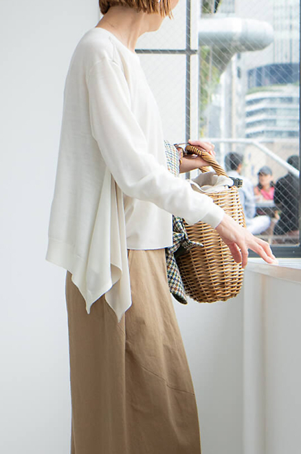 たっぷり生地を使っているので、スカートのような雰囲気もお楽しみいただける1枚。