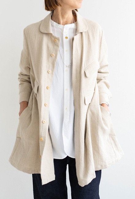 また「NEWパティシエシャツ」は、立て衿のシンプルなコットンブラウス。