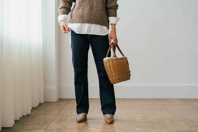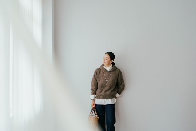 ニットに重ねる「ピローブラウス」が、わたしの定番。