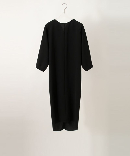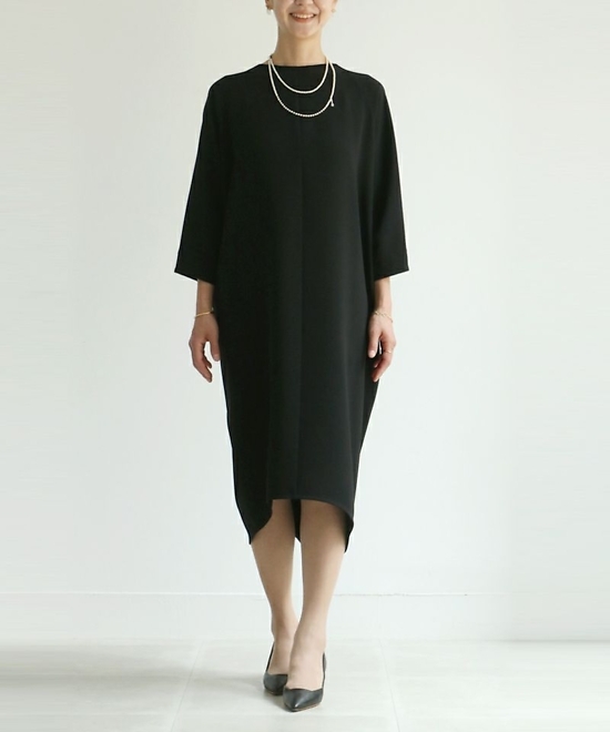また「ブラックドレープ」7分袖は後ろが特徴的なデザインのワンピースです。