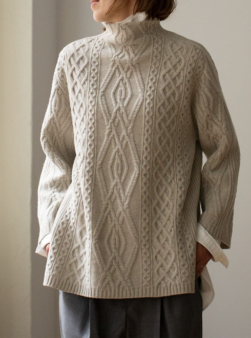 「カレイドニット トープグレー」はハイネックスタイルで、お袖口も