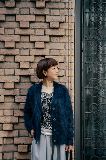 そして「カシミヤモナムール」は毛足のあるニットカーディガンです。