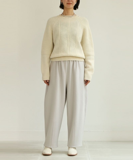また「マカロンパンツ」ウールは、程よくカーブされたシルエットが可愛いパンツ。